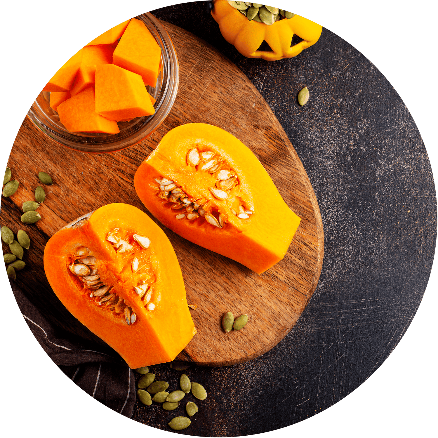 Der Kürbis ist reich an Ballaststoffen und regt den Stoffwechsel sowie die Verdauung des Hundes an. Er unterstützt das Immunsystem und schwemmt Giftstoffe aus dem Körper.