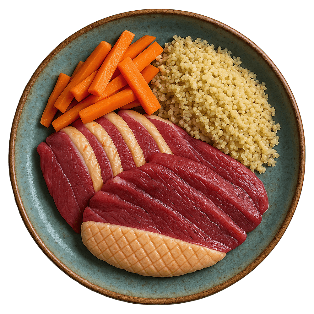 Unsere Rezepturen zeichnen sich durch minimale Zutaten pro Tag und maximale Vielfalt pro Woche aus. Dies ermöglicht es, die Ernährung an die individuellen Bedürfnisse deines Hundes anzupassen.